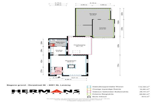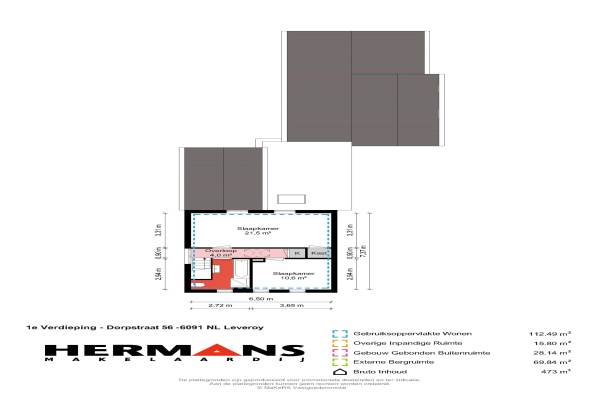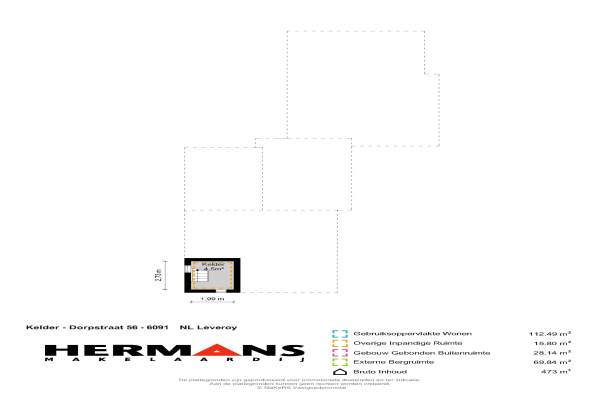 Het adres van deze woning uit 1957 is Dorpstraat 56 te Leveroy. Het pand heeft een oppervlakte van 112m² en een perceeloppervlakte van 1385m² en heeft 3 kamers kamers waarvan 2 slaapkamers. De geschatte waarde van deze woning is € 295.000.