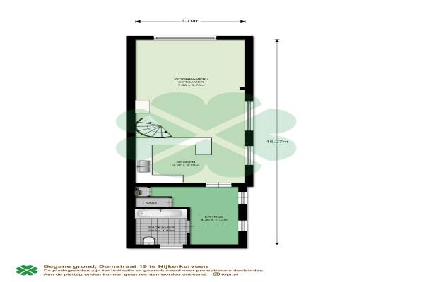 Het adres van deze woning uit 1930 is Domstraat 19 te Nijkerkerveen. Het pand heeft een oppervlakte van 99m² en een perceeloppervlakte van 729m² en heeft 4 kamers kamers waarvan 3 slaapkamers. De geschatte waarde van deze woning is € 369.500.