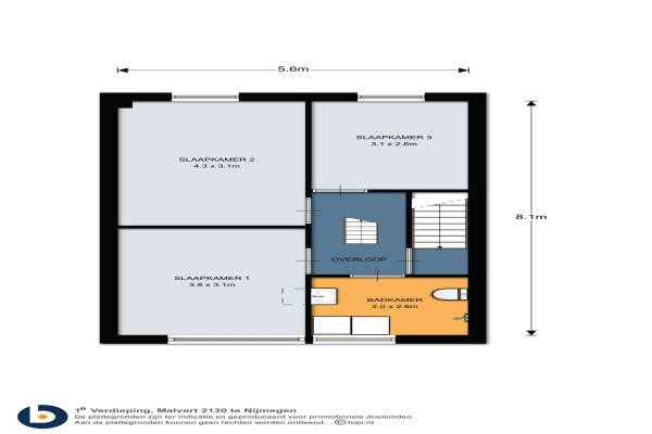 Het adres van deze woning uit 1968 is Malvert 2130 te 38 AL Nijmegen. Het pand heeft een oppervlakte van 115m² en een perceeloppervlakte van 160m² en heeft 5 kamers kamers waarvan 4 slaapkamers. De geschatte waarde van deze woning is € 175.000.