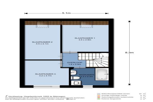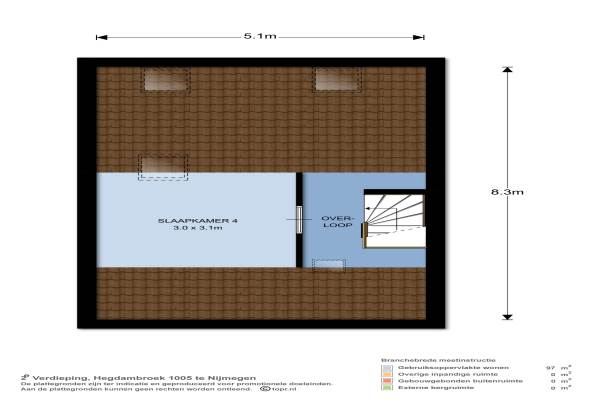 Het adres van deze woning uit 1988 is Hegdambroek 1005 te 46 VC Nijmegen. Het pand heeft een oppervlakte van 97m² en een perceeloppervlakte van 184m² en heeft 5 kamers kamers waarvan 4 slaapkamers. De geschatte waarde van deze woning is € 215.000.