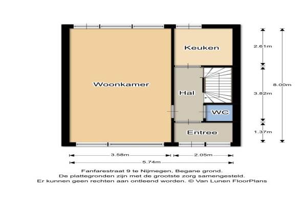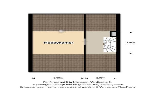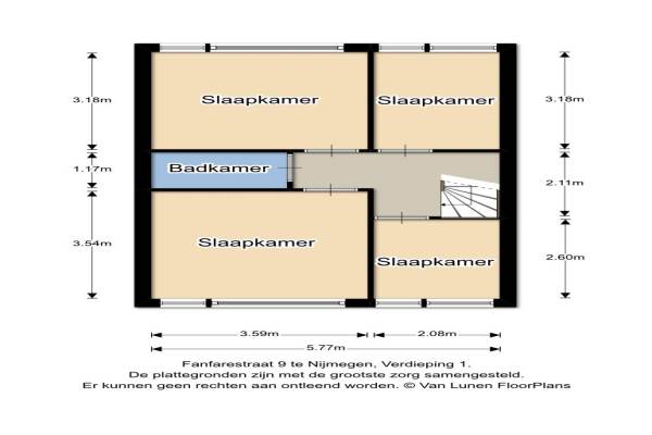 Het adres van deze woning uit 1965 is Fanfarestraat 9 te Nijmegen. Het pand heeft een oppervlakte van 105m² en een perceeloppervlakte van 145m² en heeft 6 kamers kamers waarvan 5 slaapkamers. De geschatte waarde van deze woning is € 157.500.