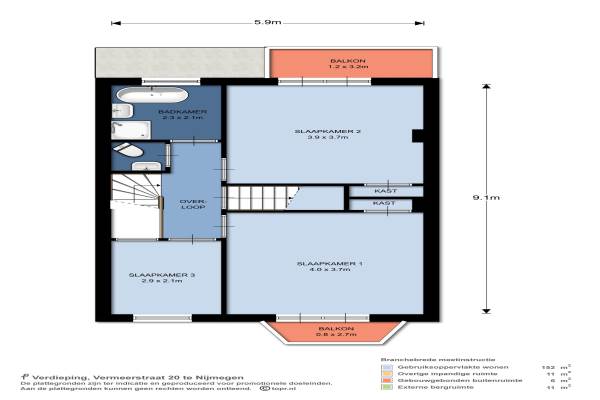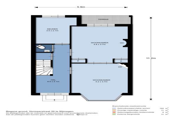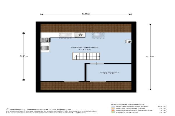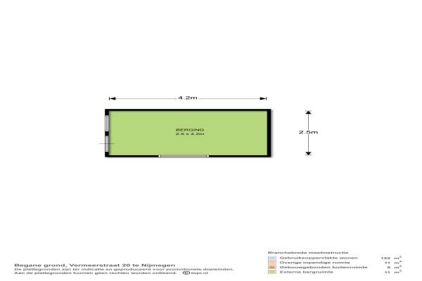Het adres van deze woning uit 1926 is Vermeerstraat 20 te Nijmegen. Het pand heeft een oppervlakte van 152m² en een perceeloppervlakte van 217m² en heeft 5 kamers kamers waarvan 4 slaapkamers. De geschatte waarde van deze woning is € 475.000.
