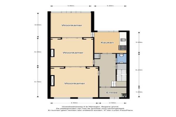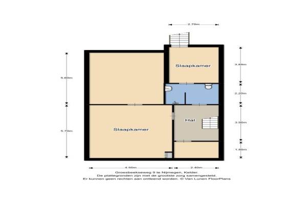 Het adres van deze woning uit 1897 is Groesbeekseweg 9 te Nijmegen. Het pand heeft een oppervlakte van 356m² en een perceeloppervlakte van 205m² en heeft 13 kamers kamers waarvan 8 slaapkamers. De geschatte waarde van deze woning is € 845.000.