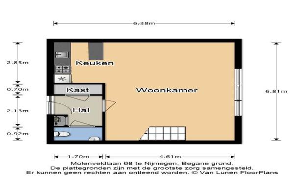 Het adres van deze woning uit 1906 is Molenveldlaan 68 te Nijmegen. Het pand heeft een oppervlakte van 79m² en heeft 2 kamers kamers waarvan 1 slaapkamers. De geschatte waarde van deze woning is € 225.000.
