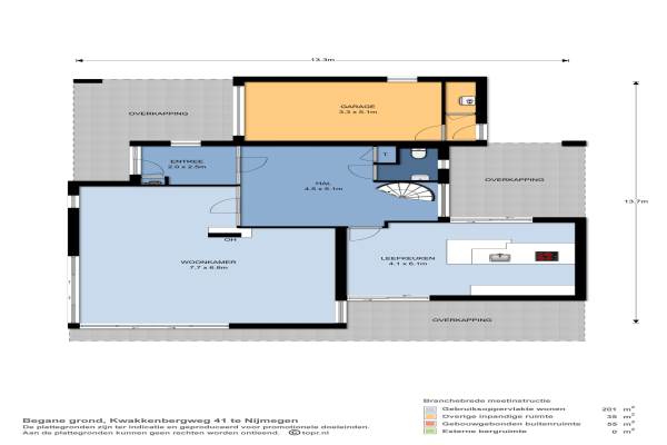 Het adres van deze woning uit 1986 is Kwakkenbergweg 41 te Nijmegen. Het pand heeft 5 kamers kamers waarvan 3 slaapkamers. De geschatte waarde van deze woning is € 1.095.000.