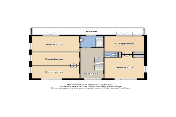Het adres van deze woning uit 1965 is Baljuwstraat 10 te Nijmegen. Het pand heeft een oppervlakte van 300m² en een perceeloppervlakte van 760m² en heeft 9 kamers kamers waarvan 7 slaapkamers. De geschatte waarde van deze woning is € 875.000.
