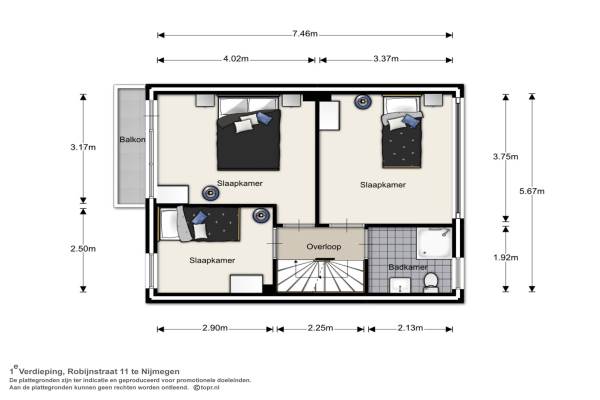 Het adres van deze woning uit 1962 is Robijnstraat 11 te Nijmegen. Het pand heeft een oppervlakte van 105m² en een perceeloppervlakte van 165m² en heeft 5 kamers kamers waarvan 4 slaapkamers. De geschatte waarde van deze woning is € 217.000.