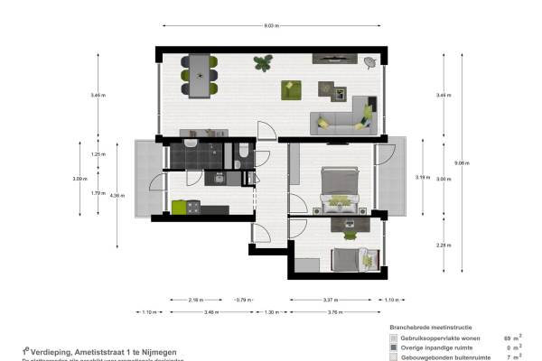Het adres van deze woning uit 1966 is Ametiststraat 1 te Nijmegen. Het pand heeft een oppervlakte van 69m² en heeft 3 kamers kamers waarvan 2 slaapkamers. De geschatte waarde van deze woning is € 235.000.