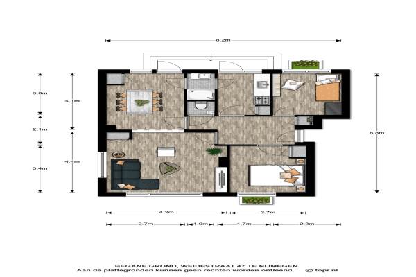 Het adres van deze woning uit 1958 is Weidestraat 47 te Nijmegen. Het pand heeft een oppervlakte van 65m² en heeft 3 kamers kamers waarvan 2 slaapkamers. De geschatte waarde van deze woning is € 199.500.
