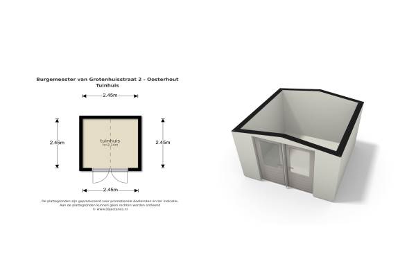 Het adres van deze woning uit 1971 is Burgemeester van Grotenhuisstraat 2 te Oosterhout Nb. Het pand heeft een oppervlakte van 122m² en een perceeloppervlakte van 290m² en heeft 5 kamers kamers waarvan 4 slaapkamers. De geschatte waarde van deze woning is € 345.000.