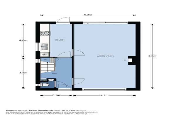 Het adres van deze woning uit 1960 is Prins Bernhardstraat 25 te Oosterhout Nb. Het pand heeft een oppervlakte van 118m² en een perceeloppervlakte van 300m² en heeft 6 kamers kamers waarvan 4 slaapkamers. De geschatte waarde van deze woning is € 259.000.