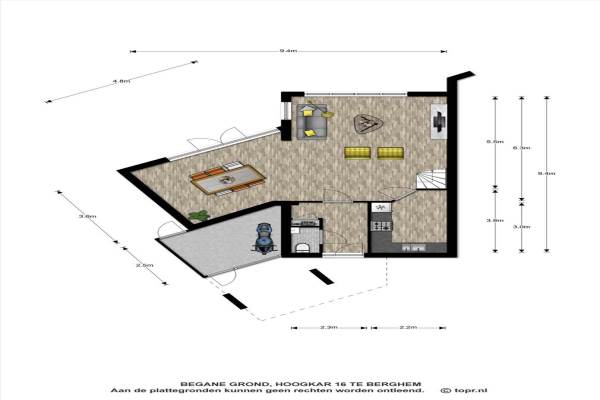 Het adres van deze woning uit 1996 is Hoogkar 16 te Berghem. Het pand heeft een oppervlakte van 125m² en een perceeloppervlakte van 276m² en heeft 5 kamers kamers waarvan 3 slaapkamers. De geschatte waarde van deze woning is € 298.000.