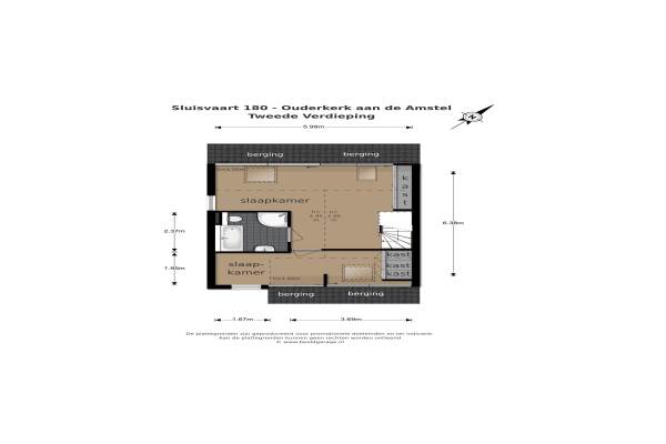 Het adres van deze woning uit 1976 is Sluisvaart 180 te Ouderkerk aan de Amstel. Het pand heeft een oppervlakte van 145m² en een perceeloppervlakte van 216m² en heeft 6 kamers kamers waarvan 5 slaapkamers. De geschatte waarde van deze woning is € 595.000.