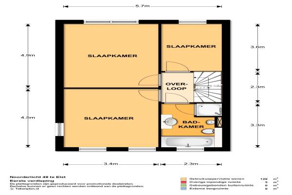 Het adres van deze woning uit 2003 is Noorderlicht 49 te Elst. Het pand heeft een oppervlakte van 129m² en een perceeloppervlakte van 254m² en heeft 5 kamers kamers waarvan 4 slaapkamers. De geschatte waarde van deze woning is € 292.000.