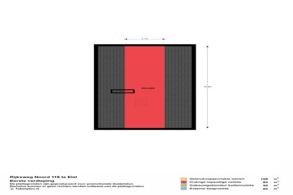 Het adres van deze woning uit 1970 is Rijksweg-Noord 115 te Elst. Het pand heeft een oppervlakte van 168m² en een perceeloppervlakte van 7829m² en heeft 7 kamers kamers waarvan 4 slaapkamers. De geschatte waarde van deze woning is € 569.000.