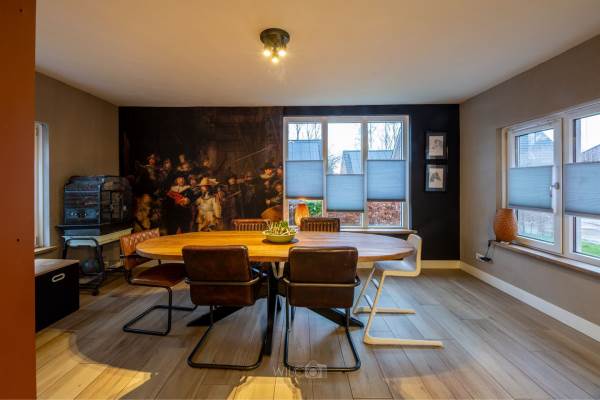 Het adres van deze woning uit 1955 is Harmoniestraat 1 te Oude Pekela. Het pand heeft een oppervlakte van 136m² en een perceeloppervlakte van 1055m² en heeft 5 kamers kamers waarvan 4 slaapkamers. De geschatte waarde van deze woning is € 349.000.