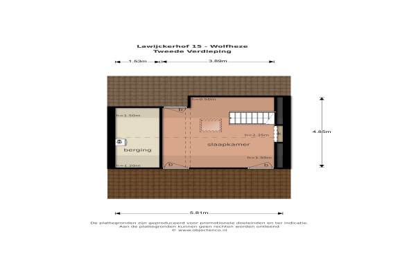 Het adres van deze woning uit 1947 is Lawijckerhof 15 te Wolfheze. Het pand heeft een oppervlakte van 130m² en een perceeloppervlakte van 291m² en heeft 6 kamers kamers waarvan 4 slaapkamers. De geschatte waarde van deze woning is € 350.000.