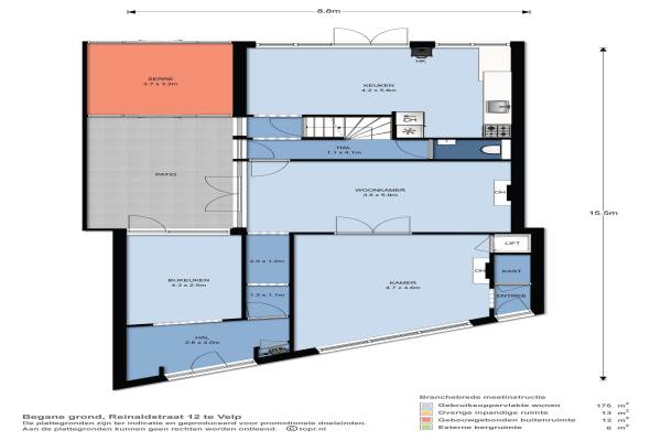 Het adres van deze woning uit 1830 is Reinaldstraat 12 te Velp Gld. Het pand heeft een oppervlakte van 175m² en een perceeloppervlakte van 220m² en heeft 7 kamers kamers waarvan 4 slaapkamers. De geschatte waarde van deze woning is € 375.000.