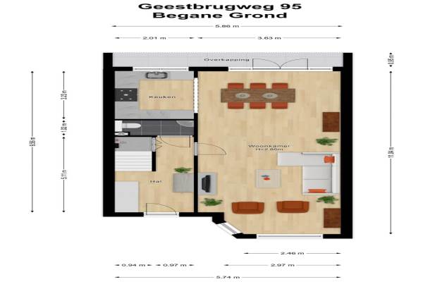 Het adres van deze woning uit 1925 is Geestbrugweg 95 te Rijswijk (ZH). Het pand heeft een oppervlakte van 144m² en een perceeloppervlakte van 119m² en heeft 4 kamers kamers waarvan 3 slaapkamers. De geschatte waarde van deze woning is € 649.500.