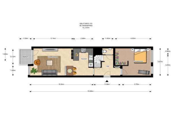 Het adres van deze woning uit 1985 is Delftweg 172 te Rijswijk. Het pand heeft een oppervlakte van 114m² en heeft 4 kamers kamers waarvan 3 slaapkamers. De geschatte waarde van deze woning is € 295.000.