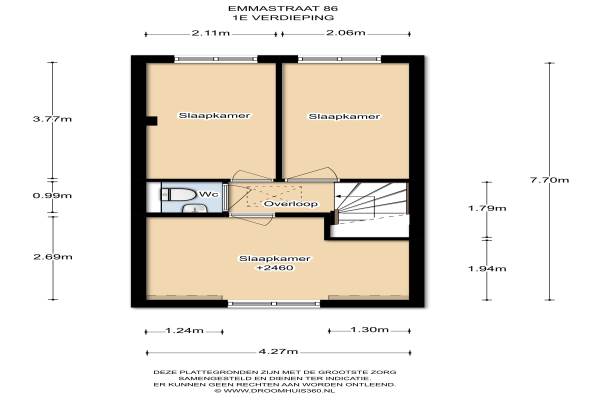 Het adres van deze woning uit 1924 is Emmastraat 86 te Roosendaal. Het pand heeft een oppervlakte van 90m² en een perceeloppervlakte van 166m² en heeft 4 kamers kamers waarvan 3 slaapkamers. De geschatte waarde van deze woning is € 205.000.