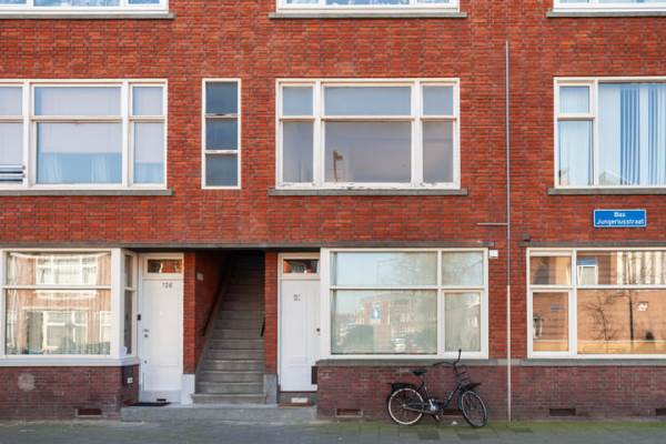 Het adres van deze woning uit 1935 is Bas Jungeriusstraat 128B te Rotterdam. Het pand heeft een oppervlakte van 45m² en heeft 2 kamers kamers waarvan 1 slaapkamers. De geschatte waarde van deze woning is € 189.000.