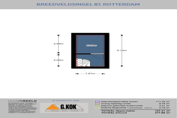 Het adres van deze woning uit 1951 is Breedveldsingel 87 te Rotterdam. Het pand heeft een oppervlakte van 110m² en een perceeloppervlakte van 174m² en heeft 5 kamers kamers waarvan 4 slaapkamers. De geschatte waarde van deze woning is € 600.000.