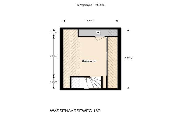Het adres van deze woning uit 1938 is Wassenaarseweg 187 te Den Haag. Het pand heeft een oppervlakte van 211m² en een perceeloppervlakte van 168m² en heeft 8 kamers kamers waarvan 7 slaapkamers. De geschatte waarde van deze woning is € 875.000.