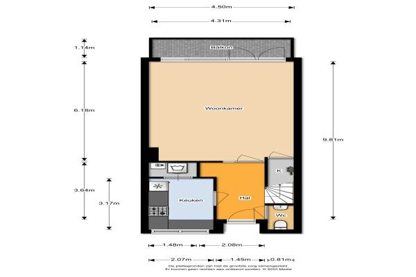 1 badkamer en 1 apart toilet