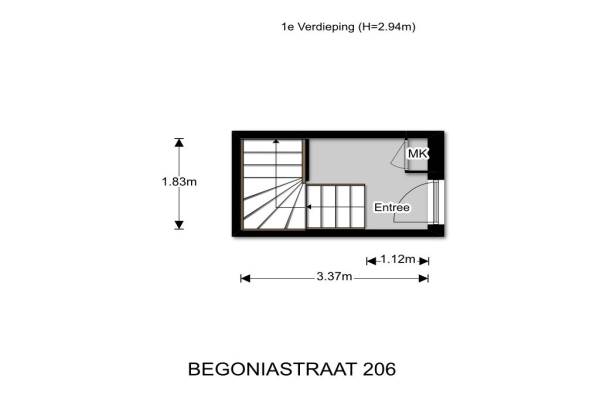 Het adres van deze woning uit 1922 is Begoniastraat 206 te Den Haag. Het pand heeft een oppervlakte van 105m² en heeft 5 kamers kamers waarvan 3 slaapkamers. De geschatte waarde van deze woning is € 250.000.