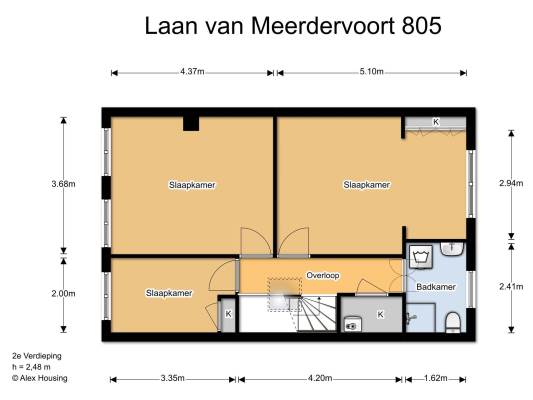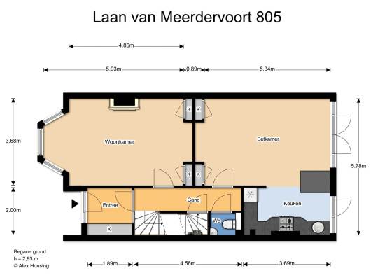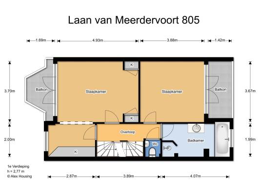 Het adres van deze woning is Laan van Meerdervoort 805 te Den Haag. Het pand heeft een oppervlakte van 177m² en een perceeloppervlakte van 141m² en heeft 8 kamers kamers waarvan 6 slaapkamers. De geschatte waarde van deze woning is € 495.000.