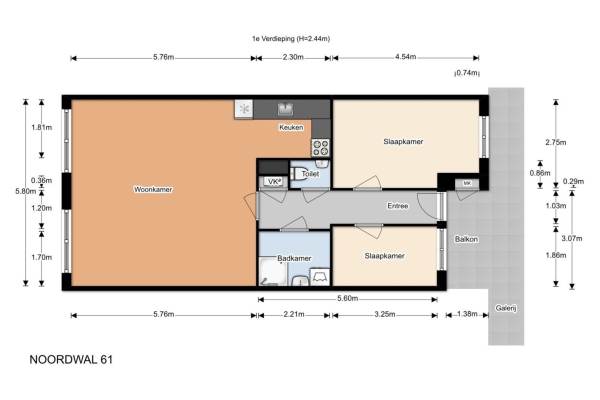 Het adres van deze woning uit 1987 is Noordwal 73 te Den Haag. Het pand heeft een oppervlakte van 69m² en heeft 3 kamers kamers waarvan 2 slaapkamers. De geschatte waarde van deze woning is € 193.000.