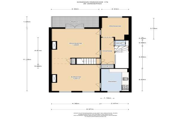 Het adres van deze woning uit 1896 is Koningin Emmakade 179A te Den Haag. Het pand heeft een oppervlakte van 146m² en heeft 6 kamers kamers waarvan 4 slaapkamers. De geschatte waarde van deze woning is € 495.000.