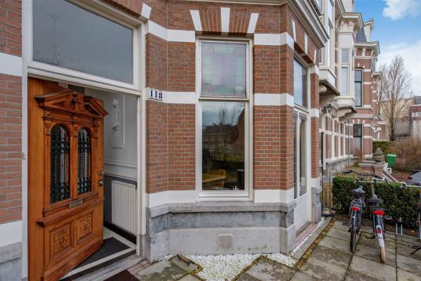 Het adres van deze woning uit 1910 is Scheveningseweg 118 te Den Haag. Het pand heeft een oppervlakte van 258m² en een perceeloppervlakte van 254m² en heeft 8 kamers kamers waarvan 6 slaapkamers. De geschatte waarde van deze woning is € 1.675.000.