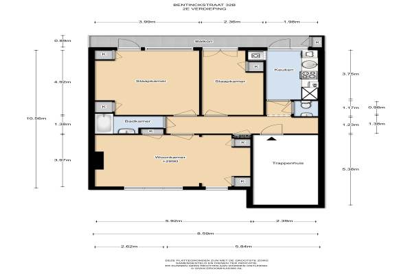 Het adres van deze woning uit 1952 is Bentinckstraat 32b te Den Haag. Het pand heeft een oppervlakte van 78m² en heeft 3 kamers kamers waarvan 2 slaapkamers. De geschatte waarde van deze woning is € 250.000.