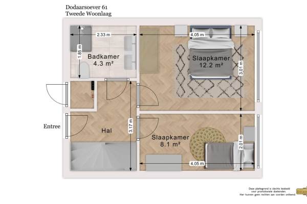Het adres van deze woning uit 2002 is Dodaarsoever 61 te Den Haag. Het pand heeft een oppervlakte van 97m² en heeft 3 kamers kamers waarvan 2 slaapkamers. De geschatte waarde van deze woning is € 395.000.