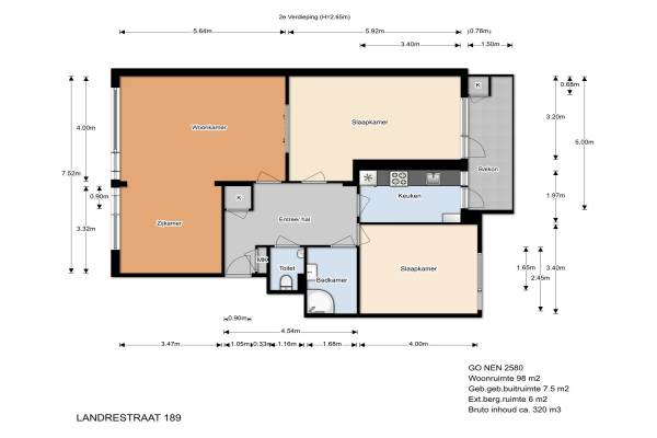 Het adres van deze woning uit 1965 is Landréstraat 189 te Den Haag. Het pand heeft een oppervlakte van 98m² en heeft 4 kamers kamers waarvan 2 slaapkamers. De geschatte waarde van deze woning is € 197.500.