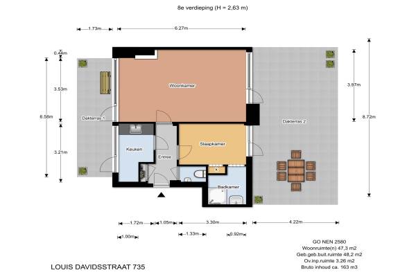 Het adres van deze woning uit 1967 is Louis Davidsstraat 735 te Den Haag. Het pand heeft een oppervlakte van 47m² en heeft 2 kamers kamers waarvan 1 slaapkamers. De geschatte waarde van deze woning is € 145.000.