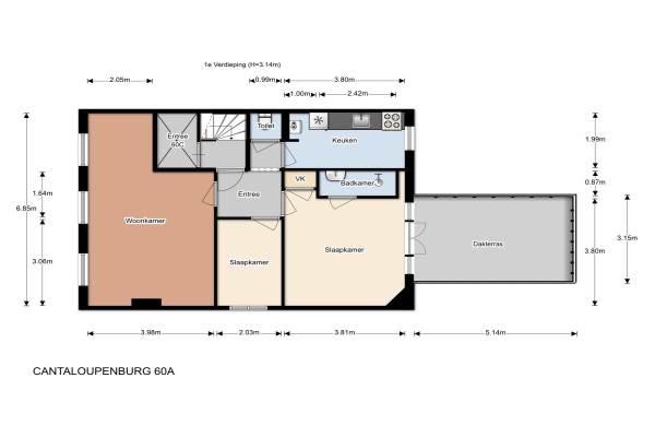 Het adres van deze woning uit 1900 is Cantaloupenburg 60 te Den Haag. Het pand heeft een oppervlakte van 63m² en heeft 3 kamers kamers waarvan 2 slaapkamers. De geschatte waarde van deze woning is € 285.000.