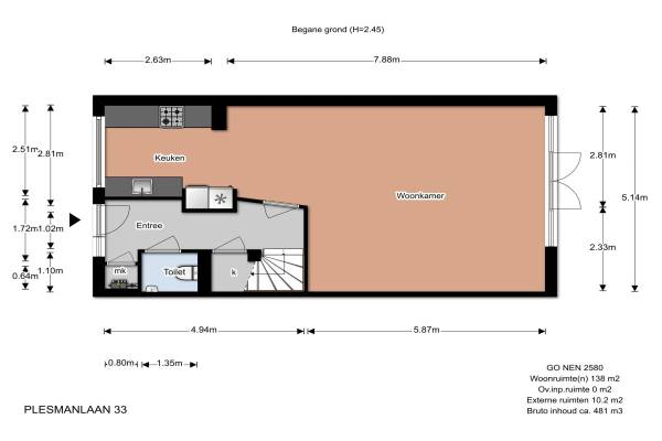 Het adres van deze woning uit 1998 is Plesmanlaan 33 te Den Haag. Het pand heeft een oppervlakte van 138m² en een perceeloppervlakte van 165m² en heeft 5 kamers kamers waarvan 4 slaapkamers. De geschatte waarde van deze woning is € 350.000.