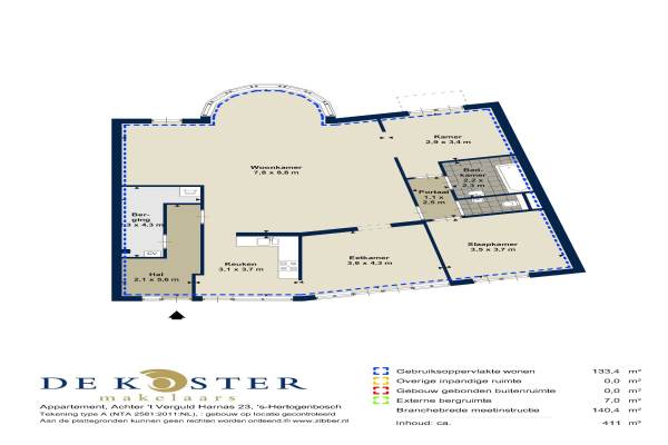 Het adres van deze woning uit 1999 is Achter het Verguld Harnas 23 te Den Bosch. Het pand heeft een oppervlakte van 133m² en heeft 5 kamers kamers waarvan 2 slaapkamers. De geschatte waarde van deze woning is € 475.000.