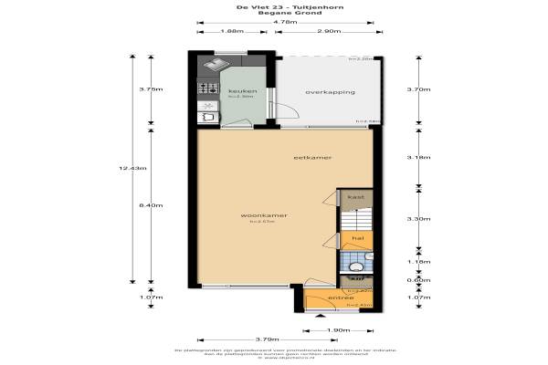 Het adres van deze woning uit 1980 is De Vlet 23 te Tuitjenhorn. Het pand heeft een oppervlakte van 106m² en een perceeloppervlakte van 155m² en heeft 5 kamers kamers waarvan 4 slaapkamers. De geschatte waarde van deze woning is € 224.500.