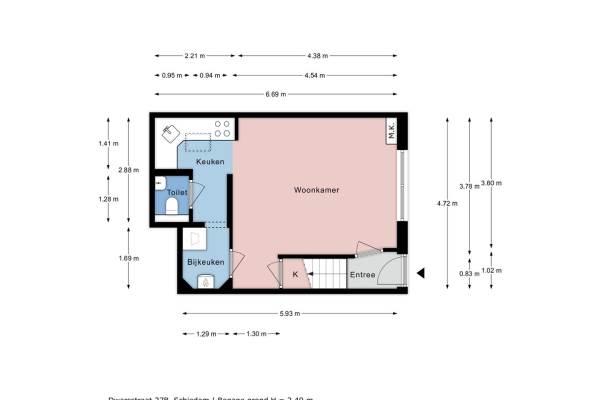 Het adres van deze woning uit 1880 is Dwarsstraat 27B te Schiedam. Het pand heeft een oppervlakte van 51m² en een perceeloppervlakte van 34m² en heeft 3 kamers kamers waarvan 2 slaapkamers. De geschatte waarde van deze woning is € 225.000.