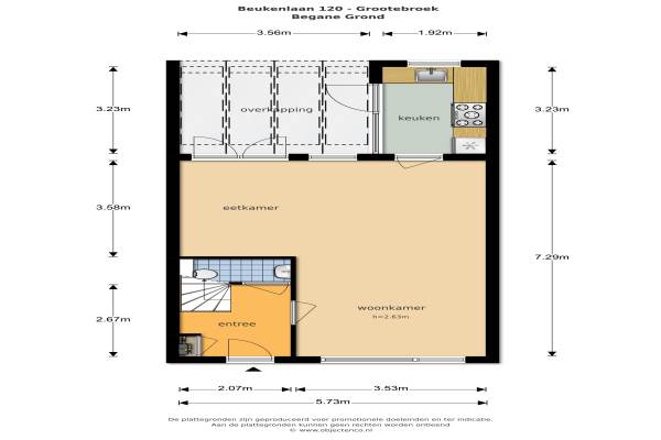 Het adres van deze woning uit 1972 is Beukenlaan 120 te Grootebroek. Het pand heeft een oppervlakte van 104m² en een perceeloppervlakte van 140m² en heeft 5 kamers kamers waarvan 4 slaapkamers. De geschatte waarde van deze woning is € 189.500.
