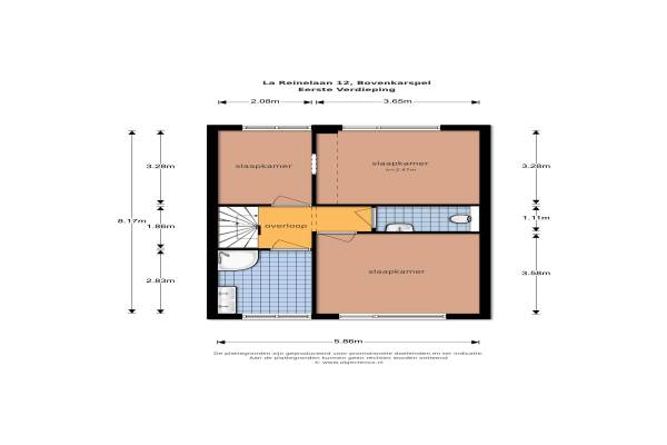 Het adres van deze woning uit 1970 is La Reinelaan 12 te Bovenkarspel. Het pand heeft een oppervlakte van 155m² en een perceeloppervlakte van 253m² en heeft 5 kamers kamers waarvan 3 slaapkamers. De geschatte waarde van deze woning is € 239.500.