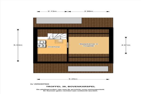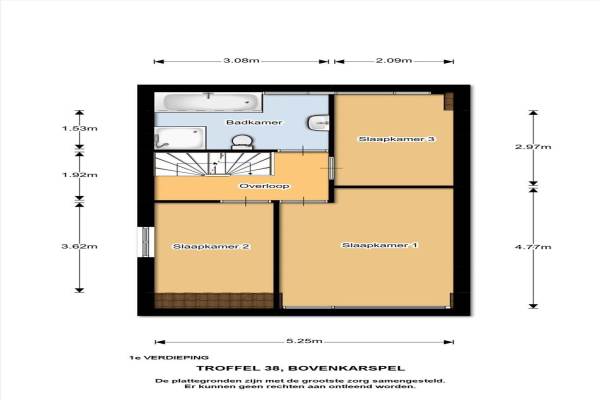 Het adres van deze woning uit 1995 is Troffel 38 te Bovenkarspel. Het pand heeft een oppervlakte van 100m² en een perceeloppervlakte van 244m² en heeft 5 kamers kamers waarvan 3 slaapkamers. De geschatte waarde van deze woning is € 275.000.