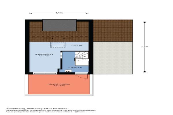 Het adres van deze woning uit 1993 is Buitenweg 325 te Maarssen. Het pand heeft een oppervlakte van 134m² en een perceeloppervlakte van 220m² en heeft 5 kamers kamers waarvan 4 slaapkamers. De geschatte waarde van deze woning is € 415.000.