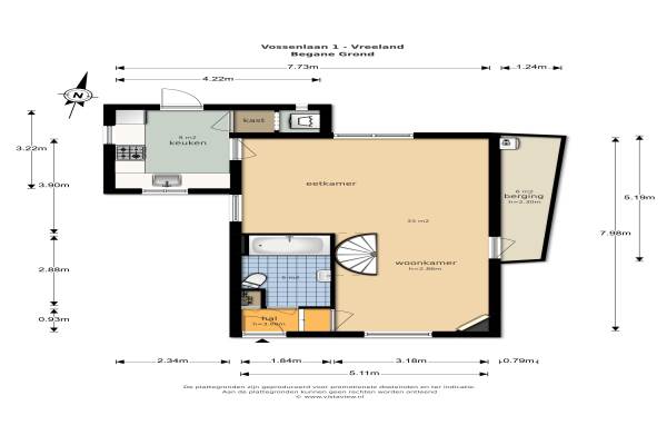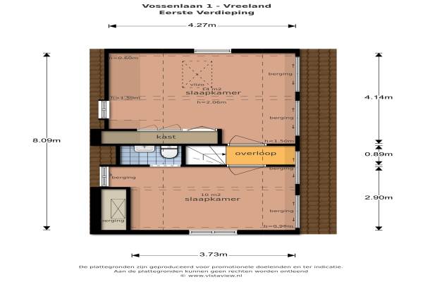 Het adres van deze woning uit 1905 is Vossenlaan 1 te Vreeland. Het pand heeft een oppervlakte van 86m² en een perceeloppervlakte van 334m² en heeft 3 kamers kamers waarvan 2 slaapkamers. De geschatte waarde van deze woning is € 569.000.