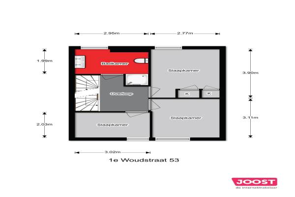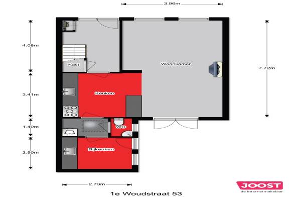 Het adres van deze woning uit 1920 is 1e Woudstraat 53 te Sneek. Het pand heeft een oppervlakte van 86m² en een perceeloppervlakte van 102m² en heeft 5 kamers kamers waarvan 4 slaapkamers. De geschatte waarde van deze woning is € 174.500.