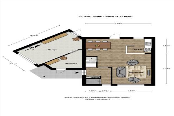 Het adres van deze woning uit 1981 is Jeker 21 te Tilburg. Het pand heeft een oppervlakte van 151m² en een perceeloppervlakte van 214m² en heeft 5 kamers kamers waarvan 3 slaapkamers. De geschatte waarde van deze woning is € 335.000.
